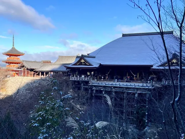 Once you climb up the hill road, you will be greeted by the vermilion-colored “Niomon.” If you continue climbing further up the stairs, you will see the 31m tall "triple tower.” It is one of the tallest in Japan and has a superb viewpoint where the vast scene of Kyoto city could be seen. The "main hall,” well-known for "jumping off the Stage of Kiyomizu (meaning to make a bold decision),” is a must-see. It is built to extend out on the slope of the mountain, and was constructed by the traditional Japanese construction method where wood is combined without using nails. It is approximately 13m in height and is equivalent to a 4-story building. The main body of worship enshrined, the "Eleven-faced Senju Sengan Kannon Statue," is a secret Buddha that, by the rules, could only be seen once every 33 years; the next time it would be shown is scheduled for 2033. Still, the "Gozen '', a slightly reduced size of the main body of worship, could be worshipped anytime.