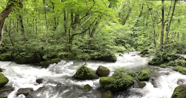 夏天的奧入瀨溪流是著名的避暑勝地,綠意盎然盡收眼底。