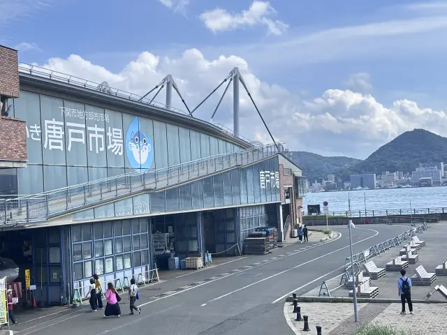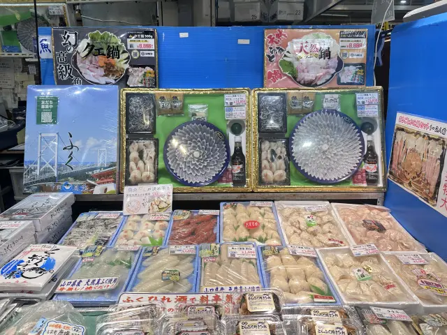 There are also restaurants next door if you want more dining options. Inside the market, you can buy fresh sashimi and seafood, and there are dried goods and souvenirs for sale too. -