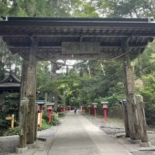 薬王院は仏教寺院だが、この門は神社の鳥居の形をしていることが特徴的。