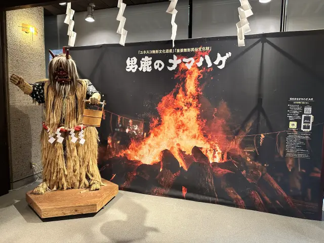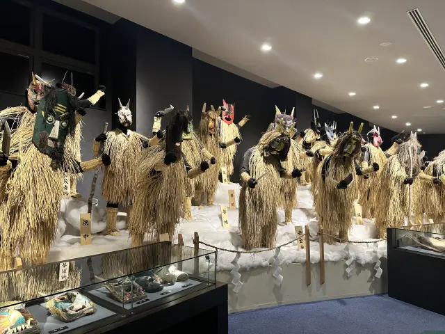隣接したなまはげ館では、男鹿半島各地の面や衣装などの展示、なまはげの映像などが見られる。