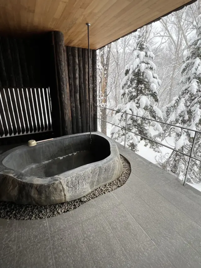15室の独立した客室すべてに、温泉の内湯と露天風呂を完備。 敷地内に湧く自家源泉100%のお湯を、原生林の香気を浴びながら心ゆくまで堪能できる。風に遊ぶ木の葉や心地よい水の音、木々の匂いや雪の静寂…ありのままの自然に身を委ねていると、日常の喧騒を離れ心からリラックスできる。