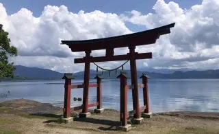 御座石神社はとても静かで落ち着いた雰囲気の神社で、全体としてはそれほど広くないものの、とても居心地がいいです。神社は湖のすぐそばにあって、天気がいいと景色が本当にきれい。湖面を眺めているとすごくリラックスできます。人もあまり多くなりにくく、のんびり散策できるので、近くまで来たときに立ち寄って、写真を撮ったり、静かな湖畔の神社の空気を味わったりするのにぴったりだと思います。
