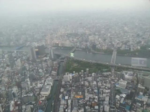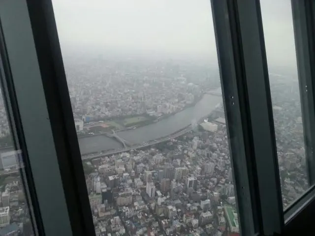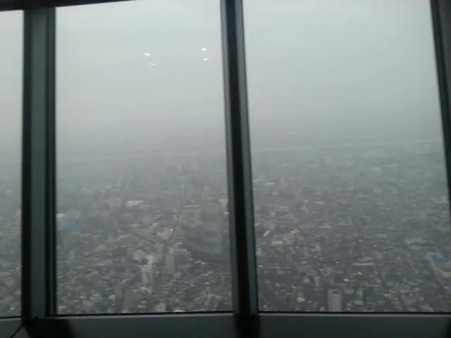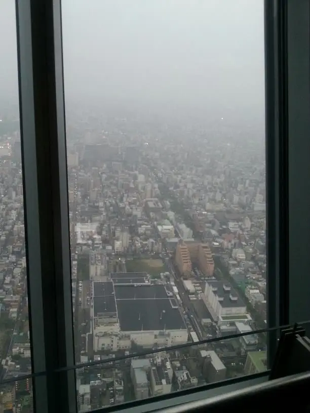 あいにくの天気で霧がかかっていて、窓の外の景色は見えず、館内の人混みだけが目立ちました😞