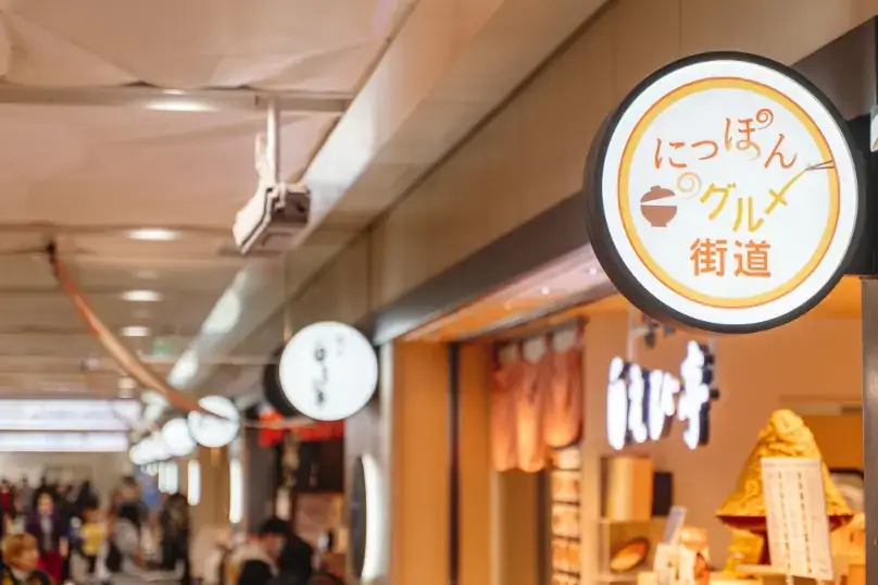 日本全国の地方色豊かな名産品や料理に出会える場所。バラエティに富んだご当地グルメを堪能できる。