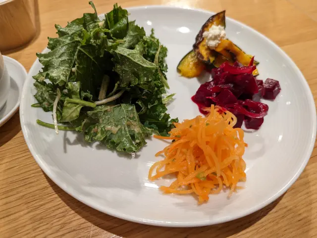 ที่โรงอาหารของ MUJI ในกินซ่า มื้อเย็นจะเป็นแบบเซ็ตเมนู มีอาหารที่ทั้งดีต่อสุขภาพและอร่อย