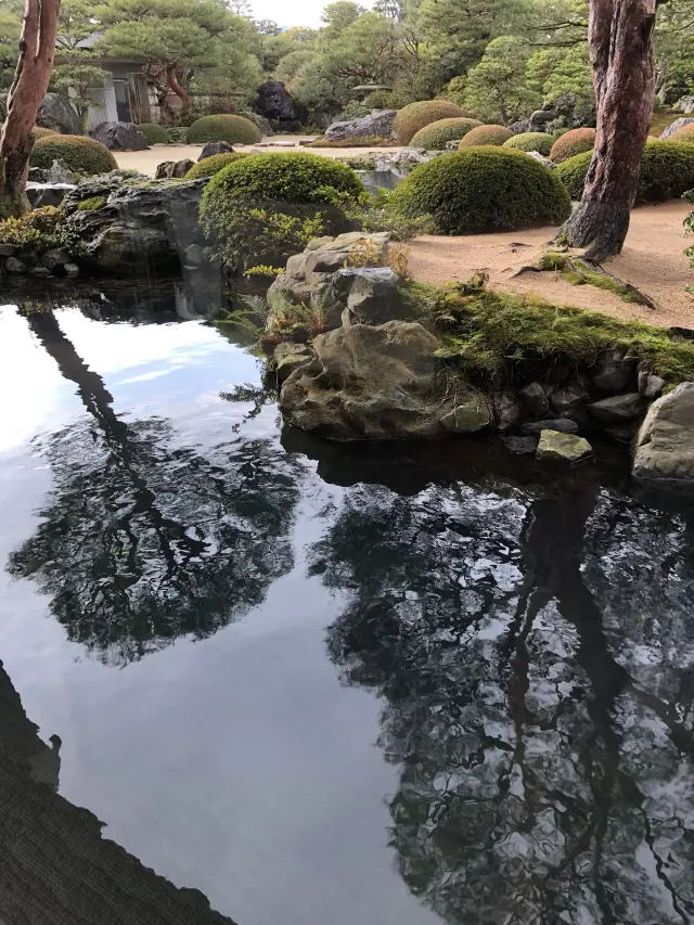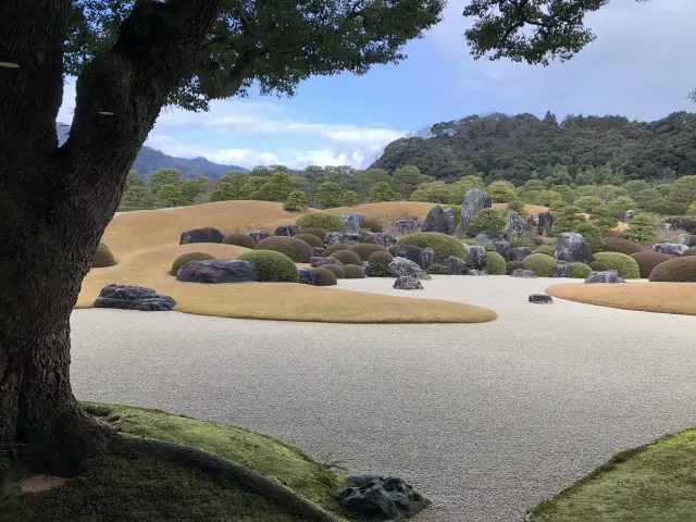 特别要提的是馆内的日式庭园非常出色,根据美国的日本庭园专门杂志排行榜,自2003年起连年都被评为日本第一庭园。设置在美术馆的周围,主庭院内分别配置着枯山水庭、苔庭、池庭等等,广大的规模达到5万坪。以横山大观的名作为范本而做出的白砂青松庭非常有名。