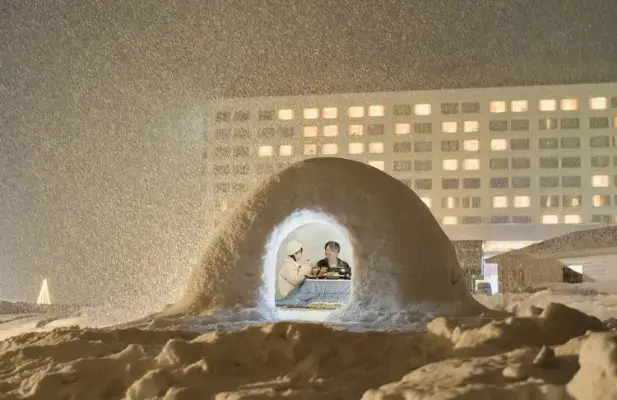 雫石王子大酒店/雫石滑雪场(岩手县)若想尽情享受梦幻而静谧的冬夜,推荐造访「雫石滑雪场」。夜间滑雪与冬季限定的「雪屋体验」皆设有灯光点缀,可同时感受夜晚的静谧与光影的绚丽。与住宿结合的夜间活动内容丰富,非常适合追求沉浸式体验的人。此外,还能在温泉中度过放松时光,无论是家人或情侣,都能在此享受悠闲宁静的夜晚。于星空与雪光交织照耀下的空间中,度过一段难以忘怀的美好体验。