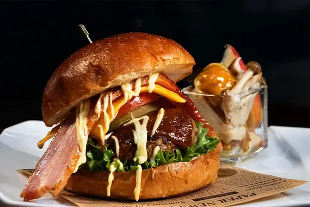 志贺高原烧额山滑雪场(长野县)志贺高原焼额山滑雪场的招牌料理——「YAKEBI巨无霸汉堡」,以份量十足著称,是滑雪后填饱肚子的绝佳选择。多汁的牛肉排与香气四溢的汉堡面包相得益彰,夹入新鲜蔬菜与特制酱汁,口感层次丰富,饱足感十足。此汉堡仅限午餐时段供应,因此特别值得把握午餐时间造访。伴随雪景享用这份大份量汉堡,更显特别。作为支撑冬季户外活动能量的雪场经典美食,人气始终居高不下。
