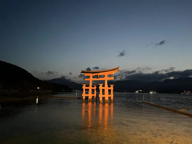白天晴空下的严岛神社, 入夜退潮时的严岛神社, 第二天清晨漂浮在海上的严岛神社, 景色都截然不同! 既庄严肃穆, 又梦幻迷人......退潮时可以走到浅滩边靠近它, 涨潮时又能远远眺望漂浮在海面上的鸟居, 真的不虚此行!