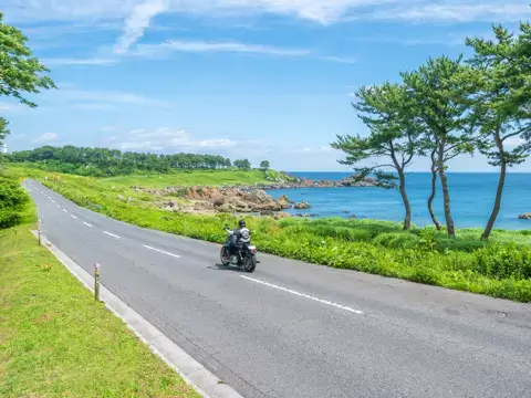 以遼闊絕景為景,在輕風吹拂下展開摩托車之旅。